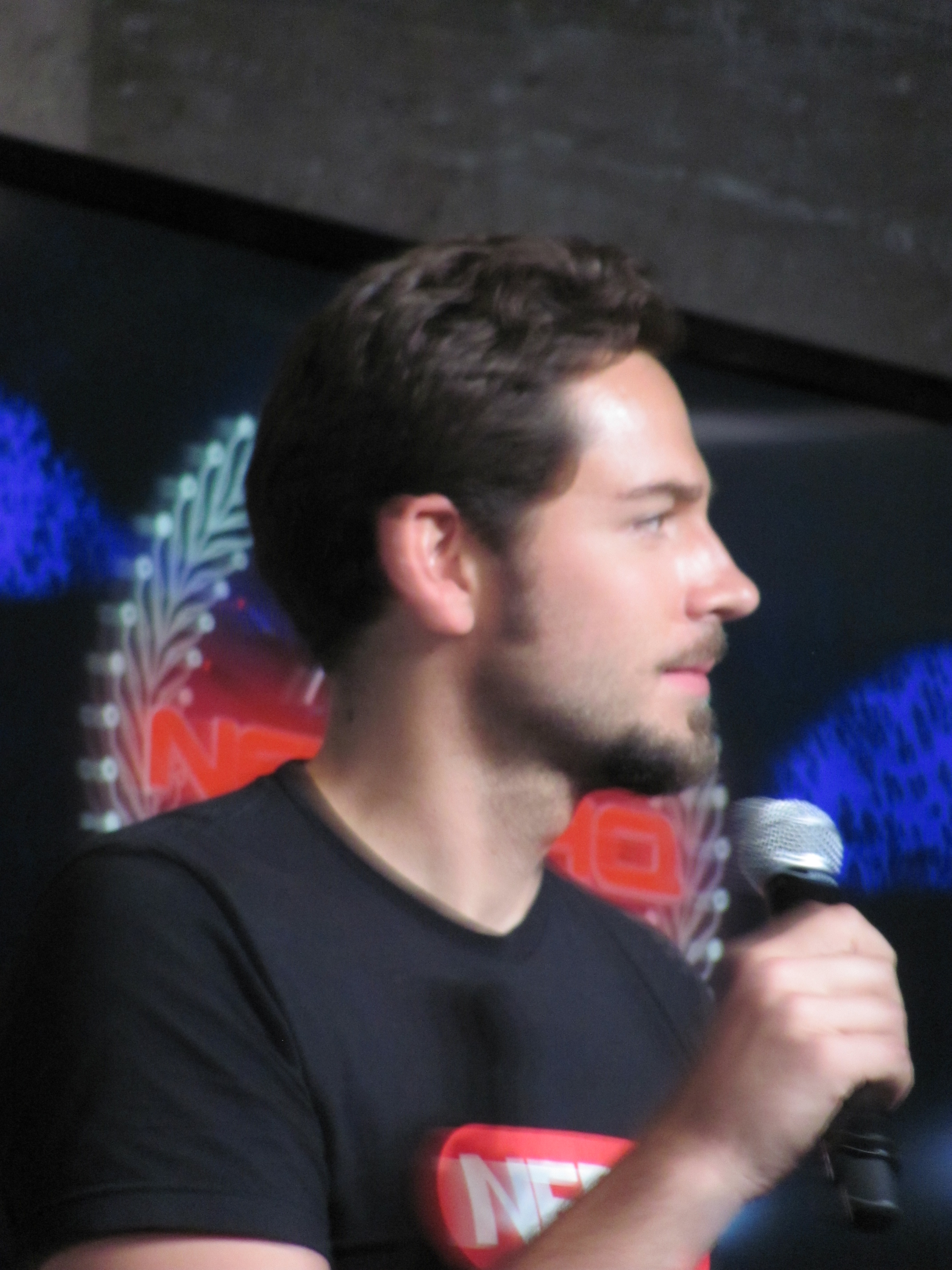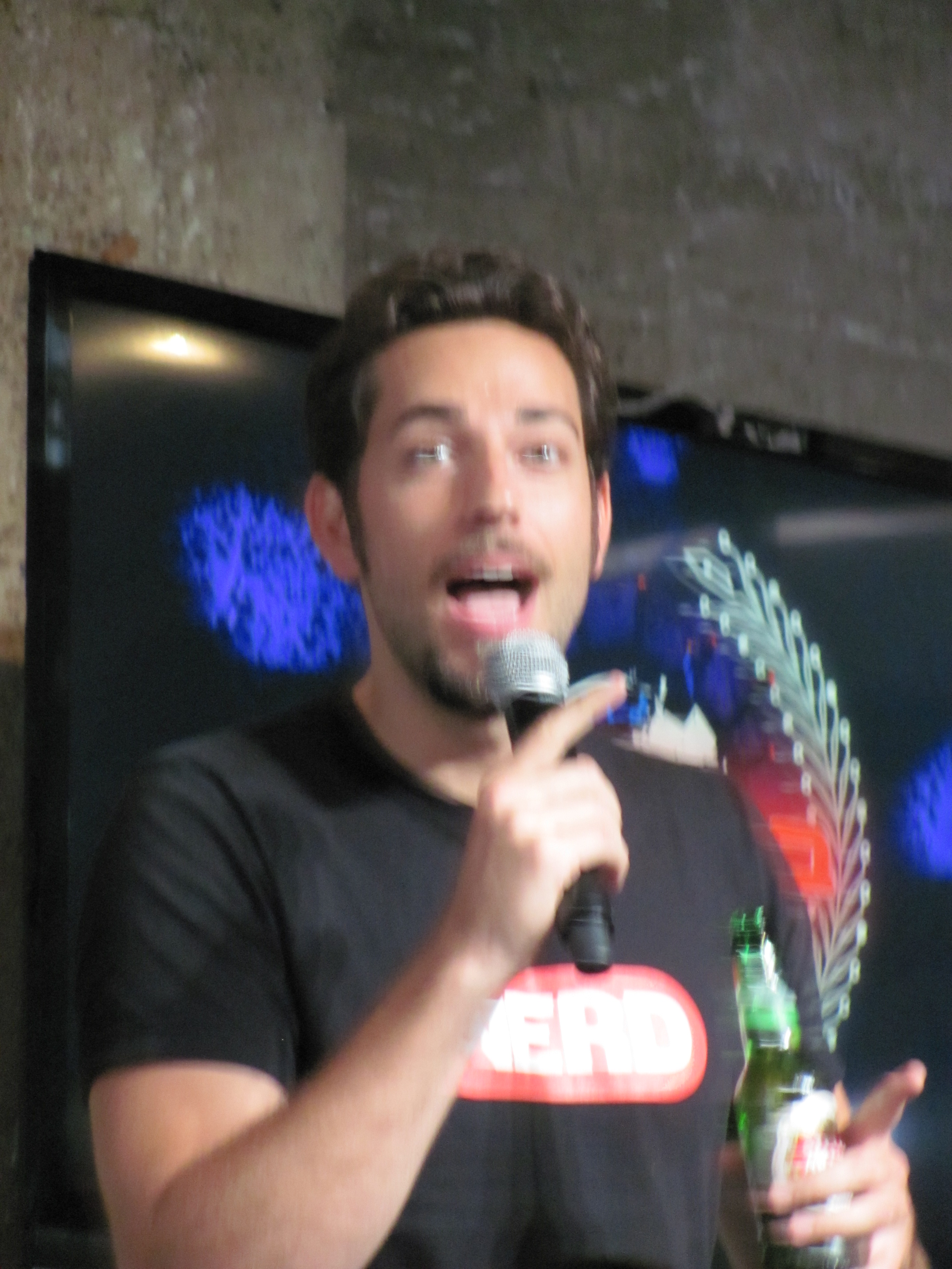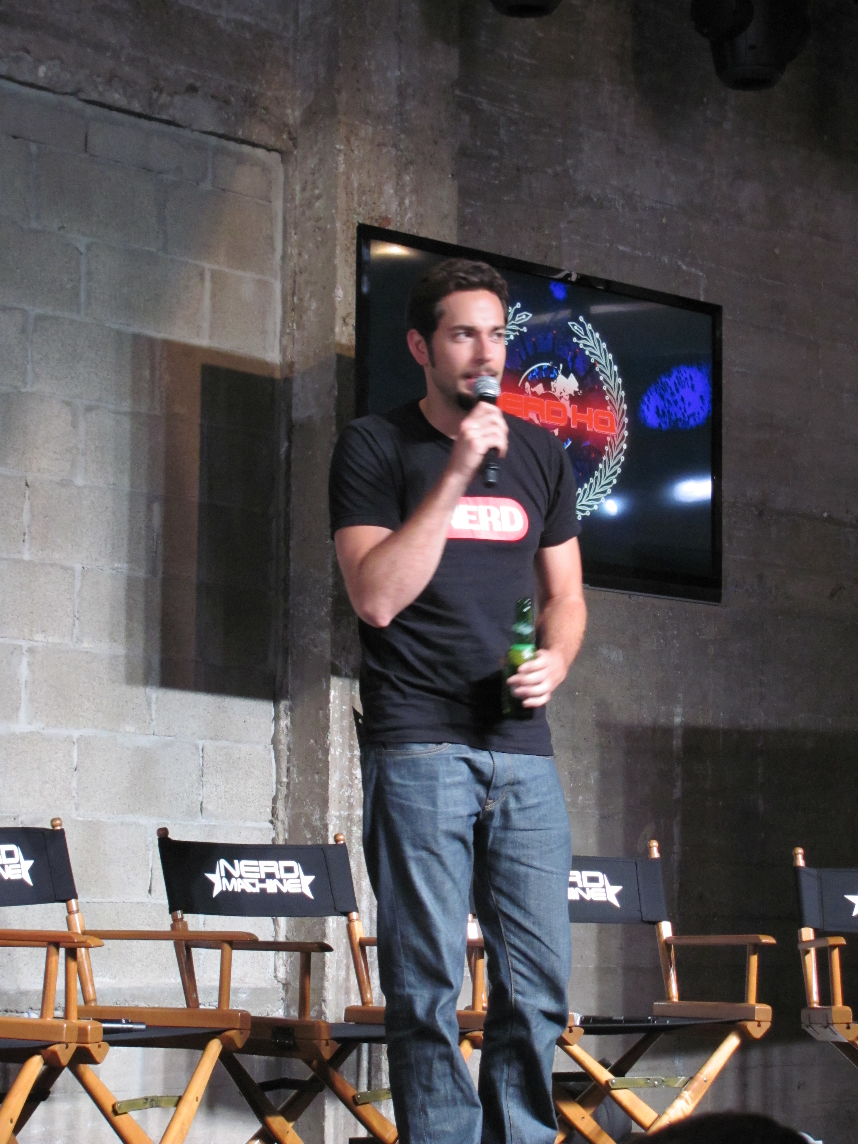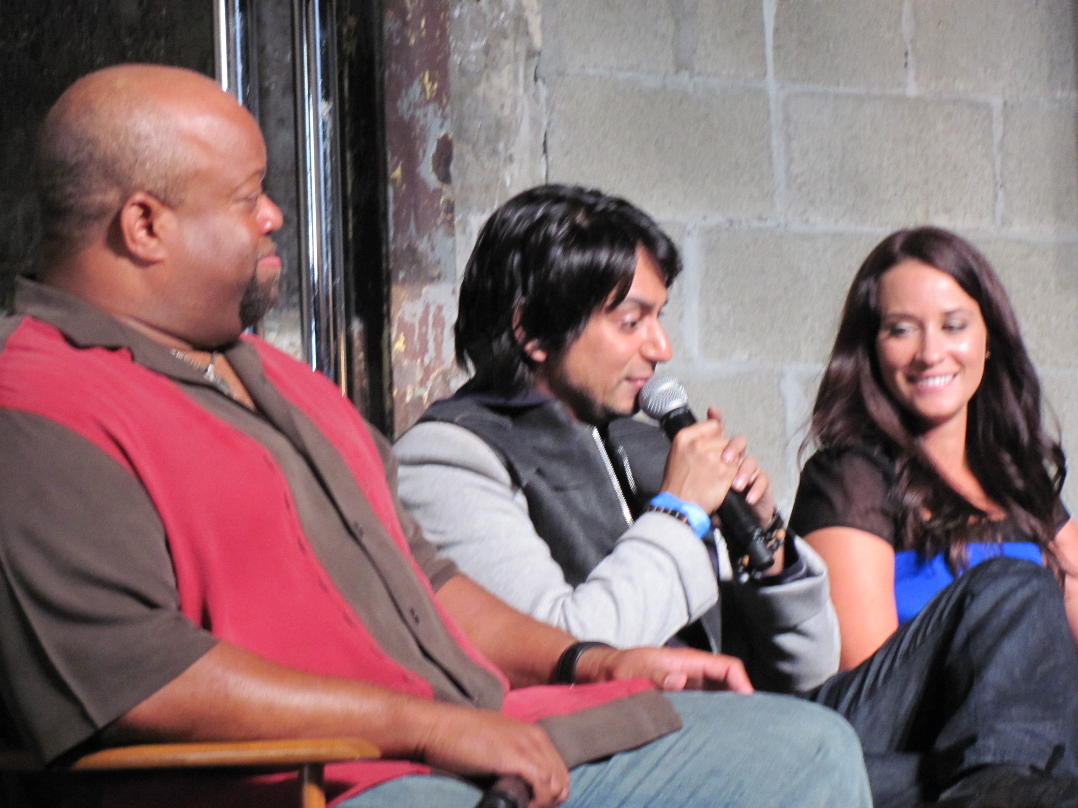 The panel included Mark Christopher Lawrence, Vik Sahay, McKenna Melvin, Zachary Levi, a mountain man beard (I believe Josh Gomez was under it), and Adam Baldwin. The first panel also had Yvonne Strahovski, but she had to dash off to press events for Dexter, so she wasn’t on the second panel. However, she was walking out of Nerd HQ as we were going in, so we did get a brief glimpse of her and an earful of her amazing accent.